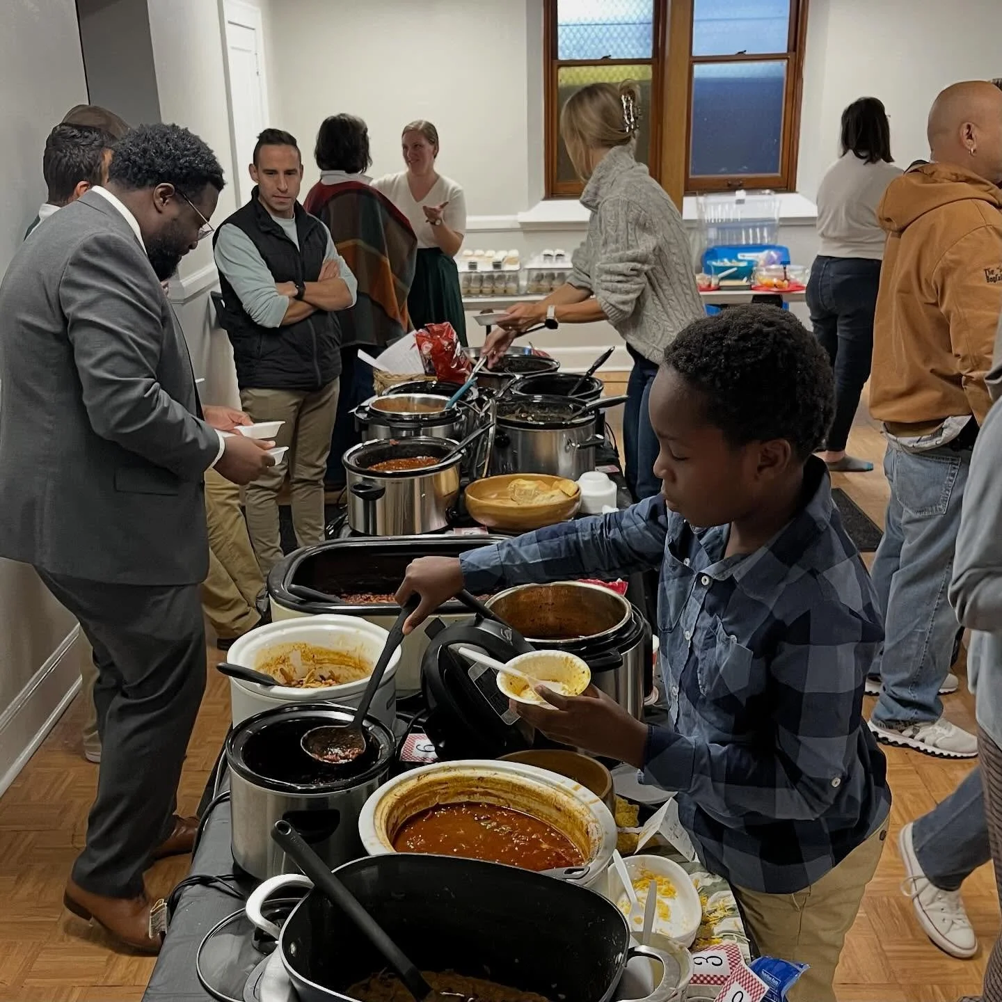 Every week after church, we host coffee and refreshments. All are invited, and there is no cost. Come meet people and share some food! We also share a church potluck on the fourth Sunday of every month, and we’d love for you to join us. To see what we will have each week, check our events calendar.